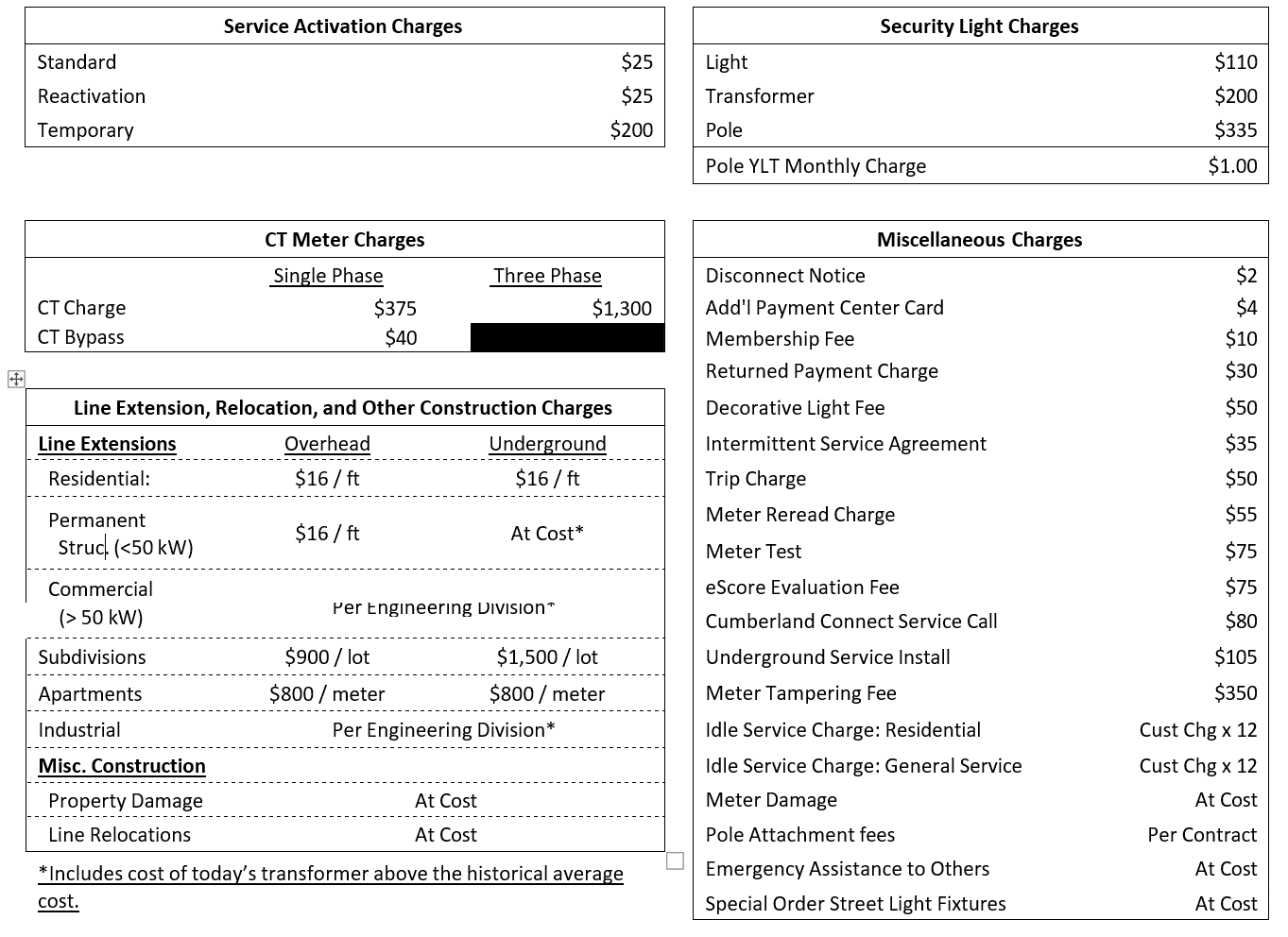 A service charge is required to set up your account. A membership fee, regardless of the number of meters, will be required of everyone receiving service from CEMC. The fee is refunded when the individual no longer has service with CEMC. See fee and service charge amounts below.